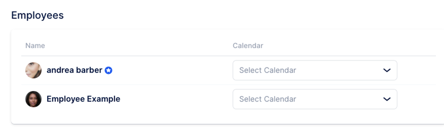 En la parte inferior de la configuración del Calendario de Apple, verá la lista de sus empleados actuales. Puedes seleccionar uno de tus calendarios conectados a la cuenta principal (que tienes conectada con Apple) para cada uno de ellos, o puedes seleccionar el mismo calendario para cada empleado (puede ser útil cuando comparten espacio de trabajo y quieres evitar dobles reservas).