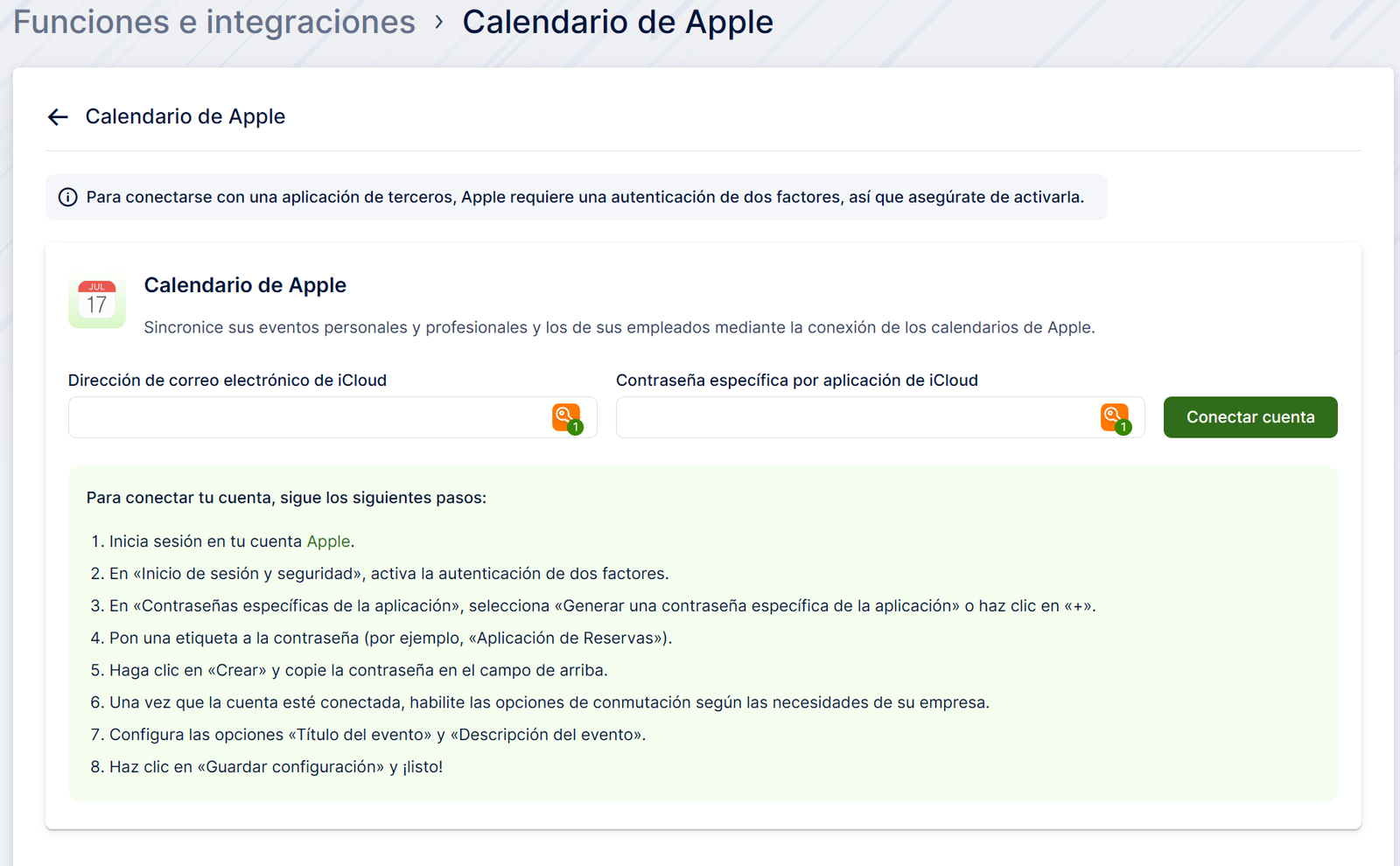 Configuración de la integración de Apple Calendar en Reservify