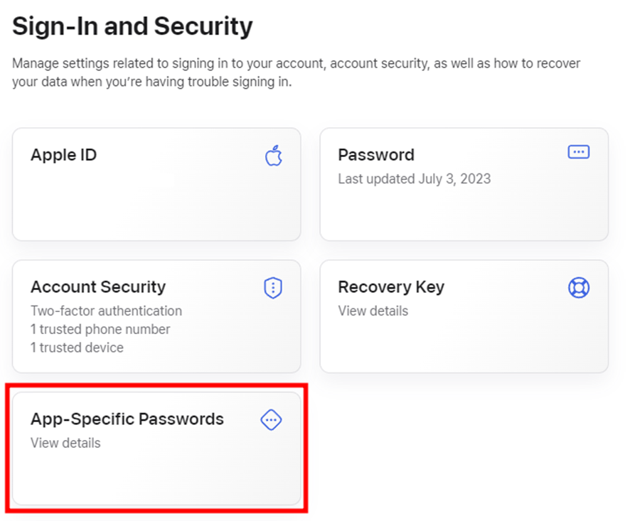 Configura la contraseña específica de la aplicación en tu cuenta de Apple