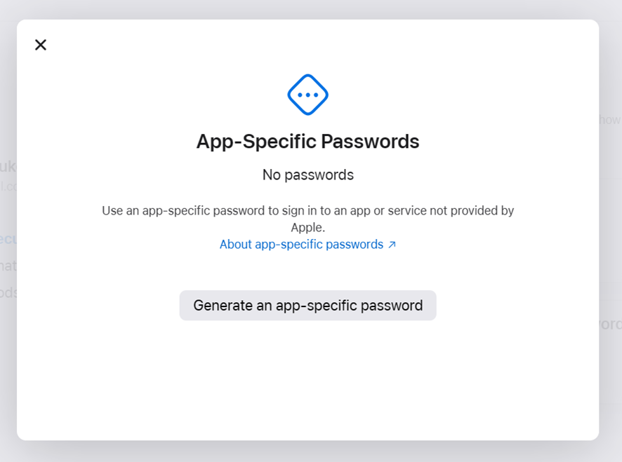 Antes de habilitar Apple Calendar en Reservify, su cuenta de Apple debe tener configurada la 2FA (autenticación de 2 factores) y crear una contraseña específica de la aplicación.