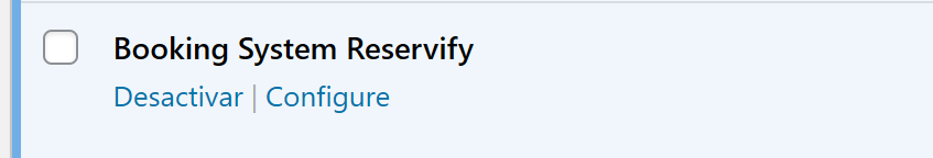 Una vez que selecciones el archivo que descargaste previamente de tu cuenta de Reservify, haz clic en «Instalar ahora». Una vez instalado el plugin, haz clic en «Activar plugin» y volverás a la sección de Plugins, donde verás el plugin «Booking System Reservify» instalado entre los demás.